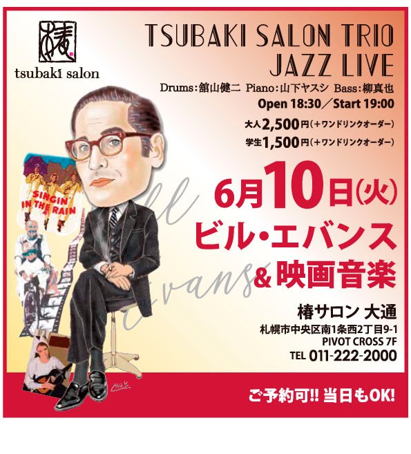 10(火)札幌 椿サロン大通 山下ヤスシTrio 山下ヤスシp.柳真也b.舘山健二ds. 19時~