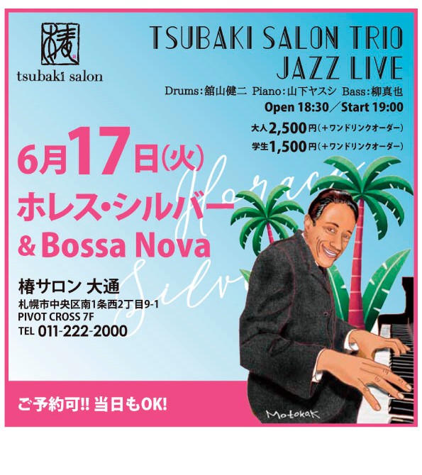 17(火)札幌 椿サロン大通 山下ヤスシTrio 山下ヤスシp.柳真也b.舘山健二ds. 19時~