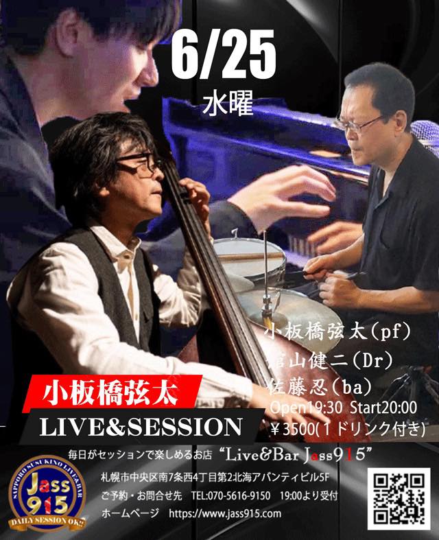 25(水)札幌 Jass915 佐藤忍Trio Live & Session 佐藤忍b.小板橋弦太p.舘山健二ds. 20時~